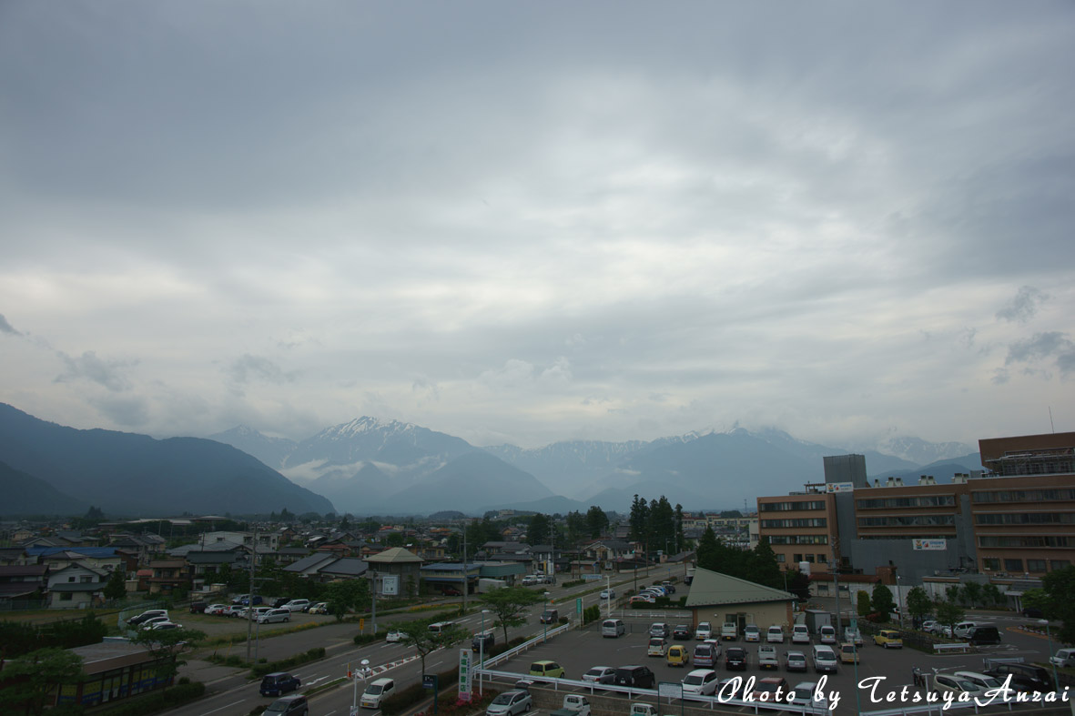 あまり天気が良くなかったので微妙ですが、目の前に北アルプスが聳えるこの景色。