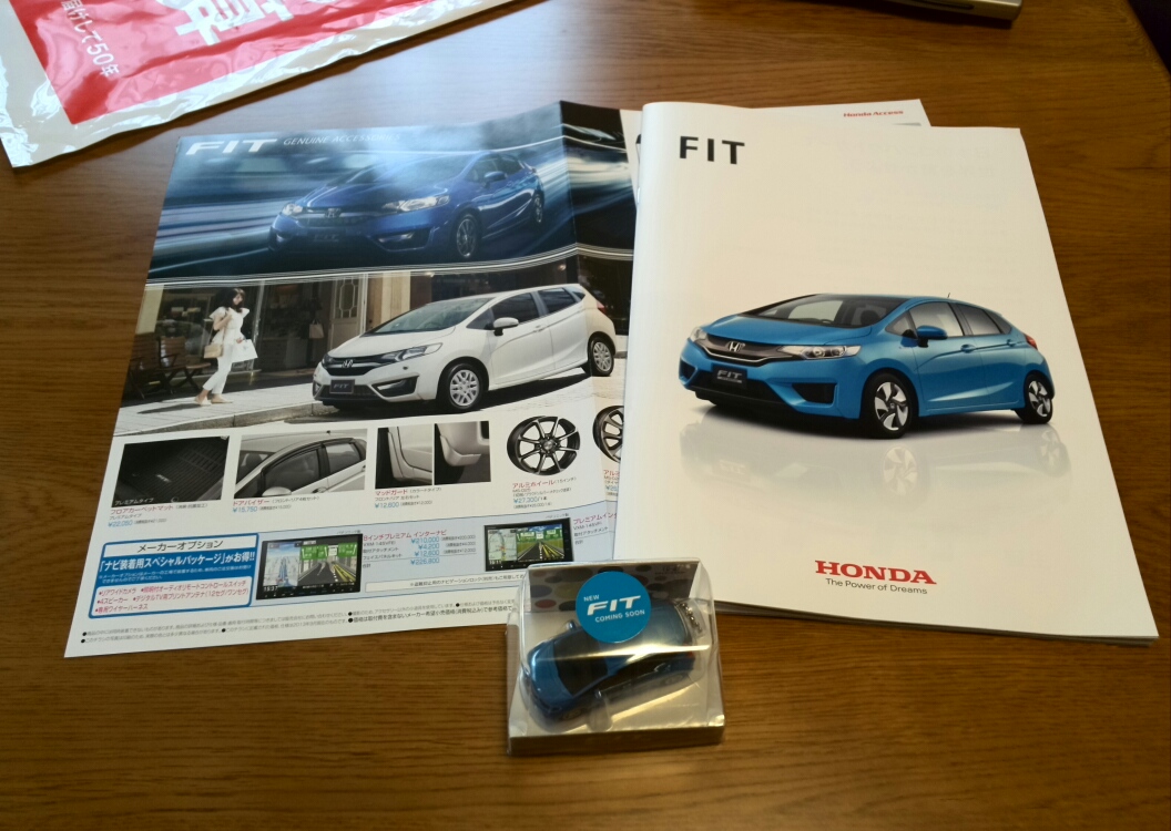そしていつもの担当さんとお話して、新しいFIT好調だという事、大体7割がHVだという事、実はアコードHVも予定の7倍売れているという事を聞き、特に意味は無いけどFITのカタログを頂きました。