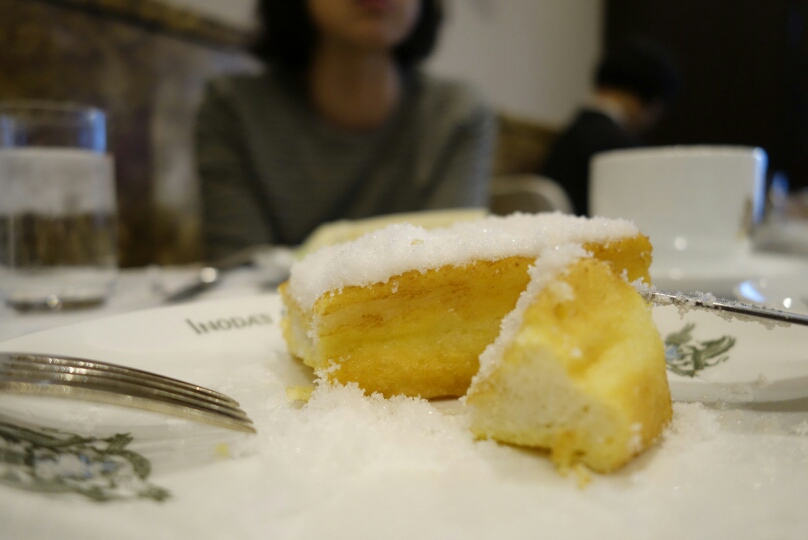 フレンチトーストはふんわりしっとりで、シャリシャリの砂糖がたっぷりで、京都の初冠雪や~