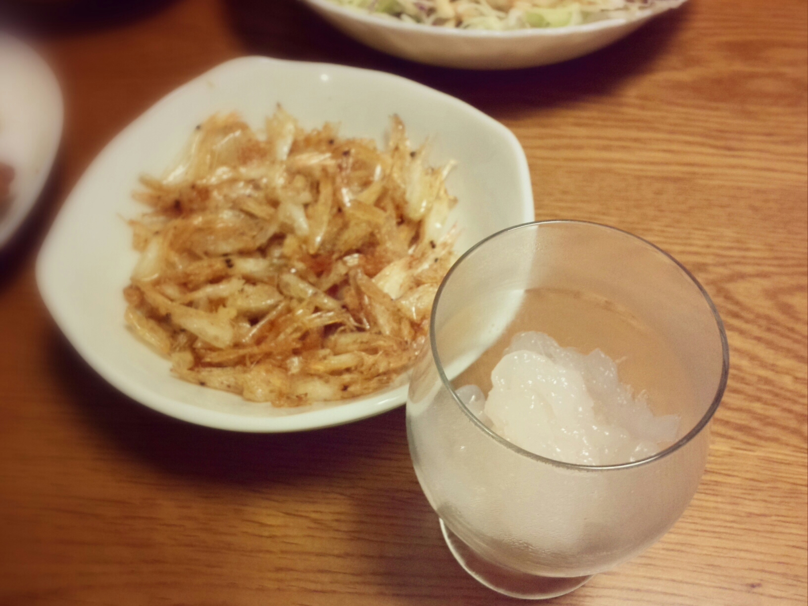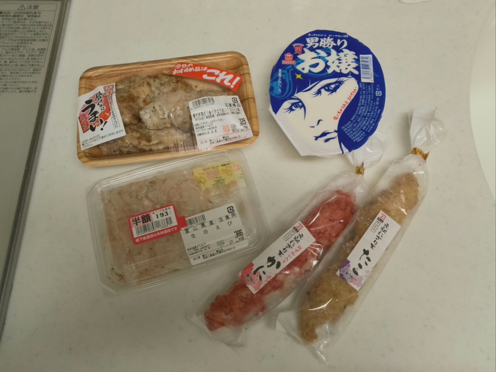 岡山の練り物と富山の白海老、骨付き鶏肉と豆腐サラダ。