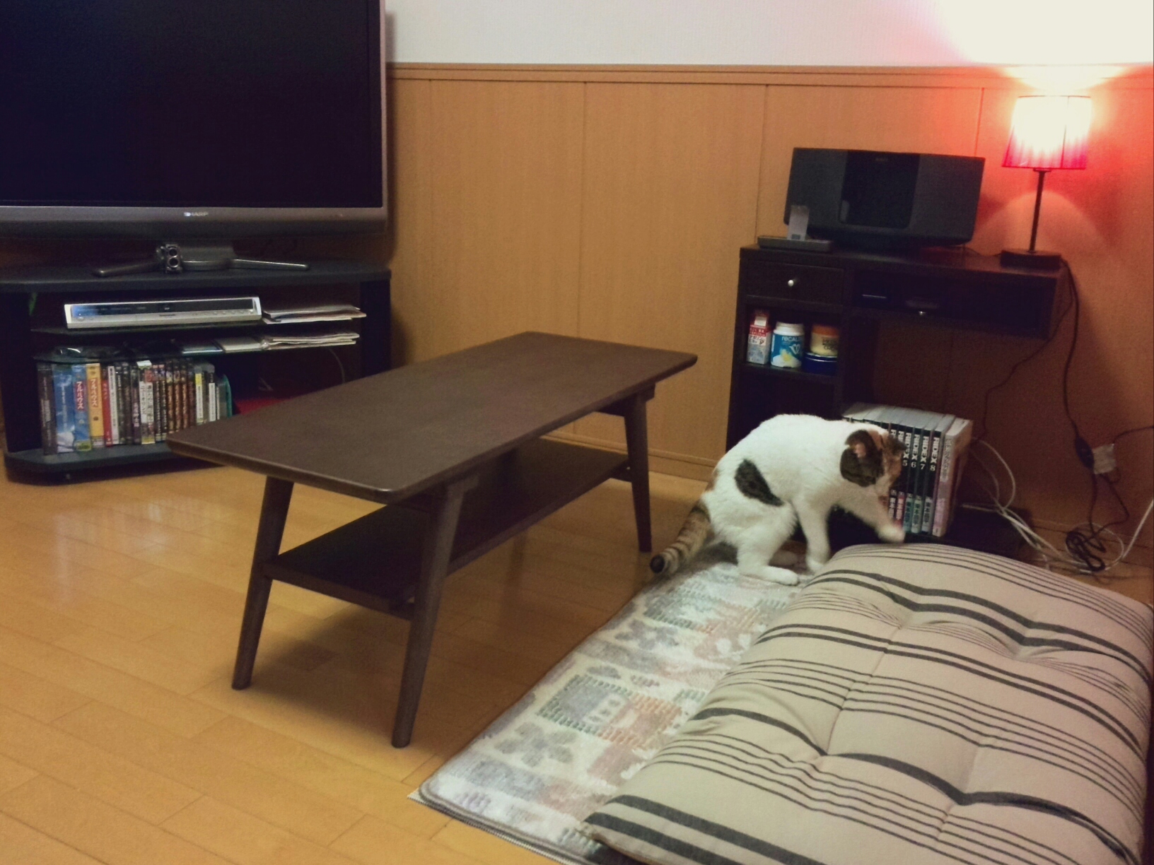 大正堂ではセール品の本革ソファーを注文し、ニトリでセンターテーブルとサイドテーブル、照明と長座布団を買ってきました。