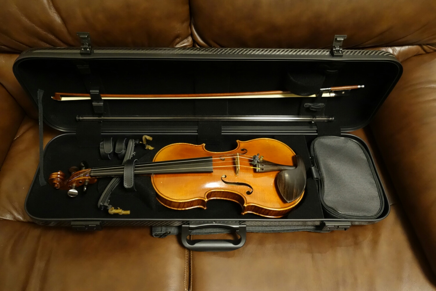 今の4/4ヴァイオリンになってから使っていた布張りのケースがえらい事になっていたので、ずっと良い物はないかと探していました。