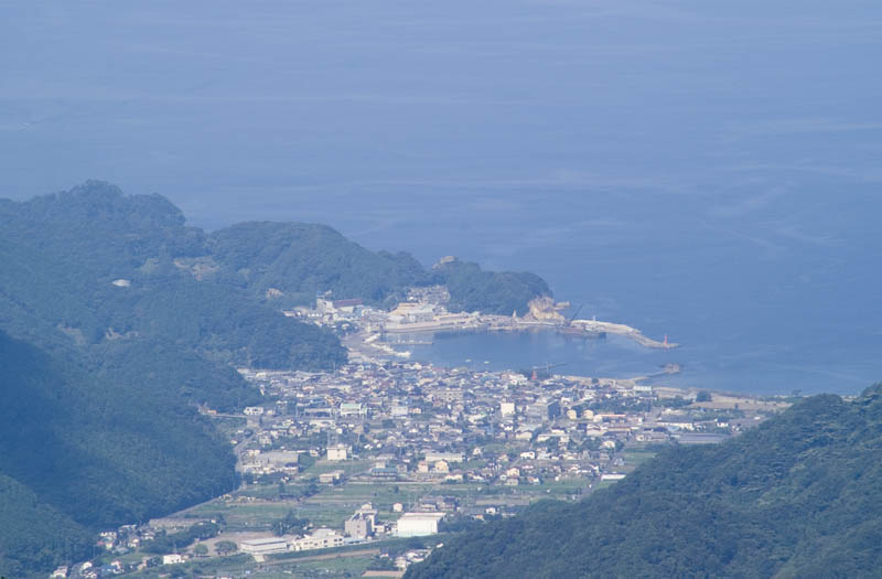 その判断はどうやら正解のようで、見晴らしがよく、駐車スペースもあり、ベンチもあって座れば目の前は田子らしき港町が見え、後ろには高原の山と輝く雲。