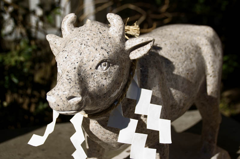 写真1:神社の牛。家は俺と兄貴とおかんが年男年女。しかもおかん還暦