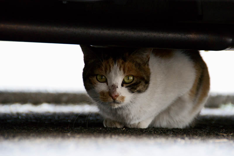 うちの車を通り過ぎてふと振り返ったら車の下に猫が飛び込むのが見えた。