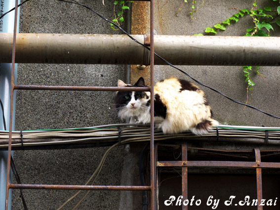 雨宿り場所を探していたのか、途中で止まり座り込む
