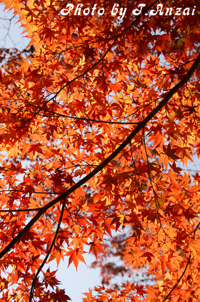 そしてお墓よりも少し奥に行った所にはまだ緑色のもみじがあったのだが、陽の光で透けた緑もなかなか綺麗なもの