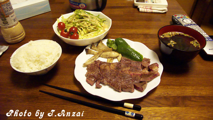 ステーキは兎に角レアが好きなので、レアとベリーレアの中間位の焼き加減にしておく