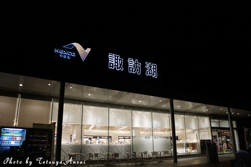 諏訪湖SAでトイレ休憩しつつ手持ち夜景モードで愛車を撮ったり