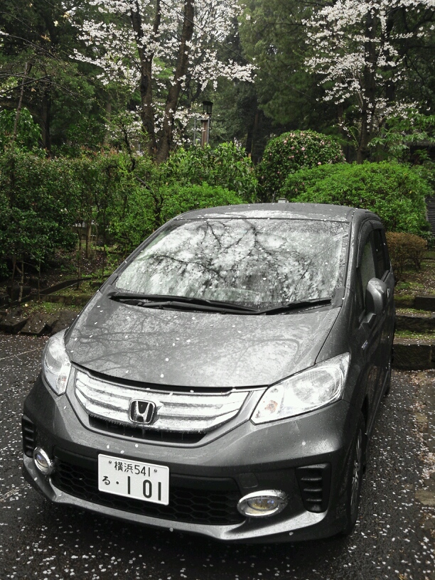 お花見していなかったので、車に付いた花びらは取らないでおこう