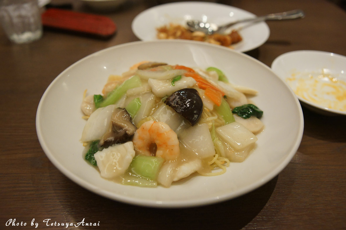 夕食には中華屋で鶏と2種ナッツの炒め物と、海鮮焼きそば