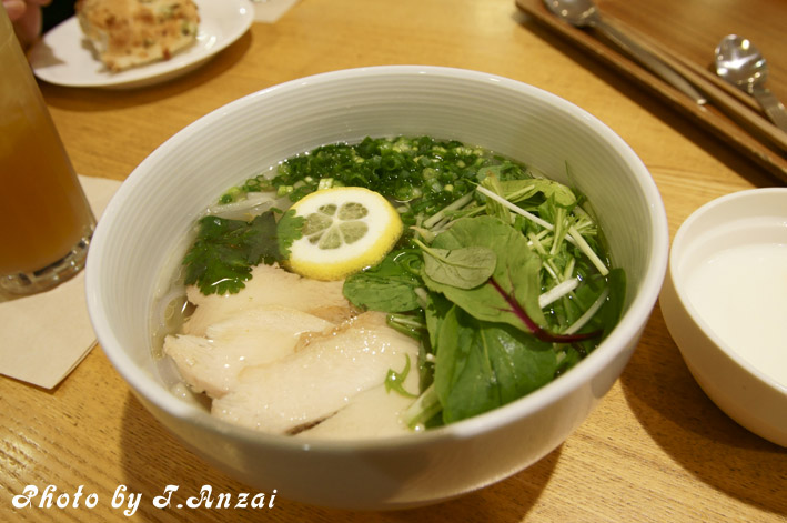 フォーは出汁の効いたスープにコシのある米麺、しっかり味の浸みた蒸し鶏、水菜もシャキシャキとして美味