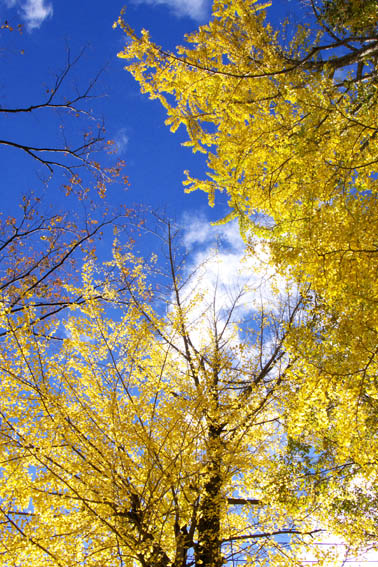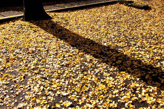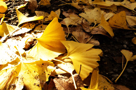 のんびり歩いているとケーブルカーの駅の手前で木の葉が舞う