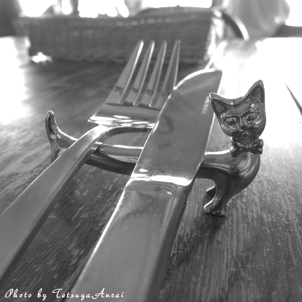 料理を待っていると先ずはフォークとナイフをセット