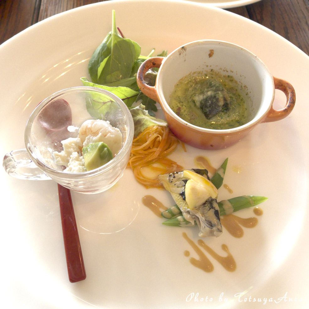 右上がサザエをバジルソースで焼いた?もの