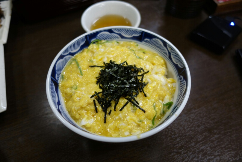 玉子丼と伏見名物うずらの焼き鳥。