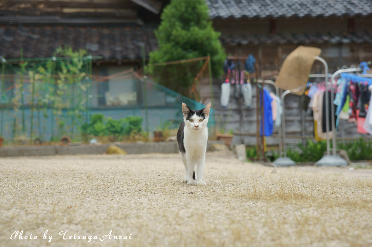 畑作業をしているおばちゃんに猫がいるか聞いてみると、近くの家で餌をあげているという。