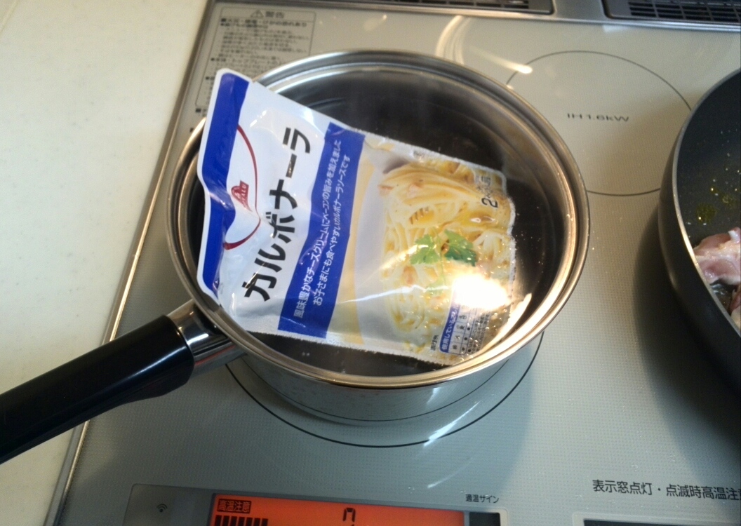 賞味期限が切れそうで冷蔵庫に放り込んでいたカルボナーラソースをいい加減使いたい。