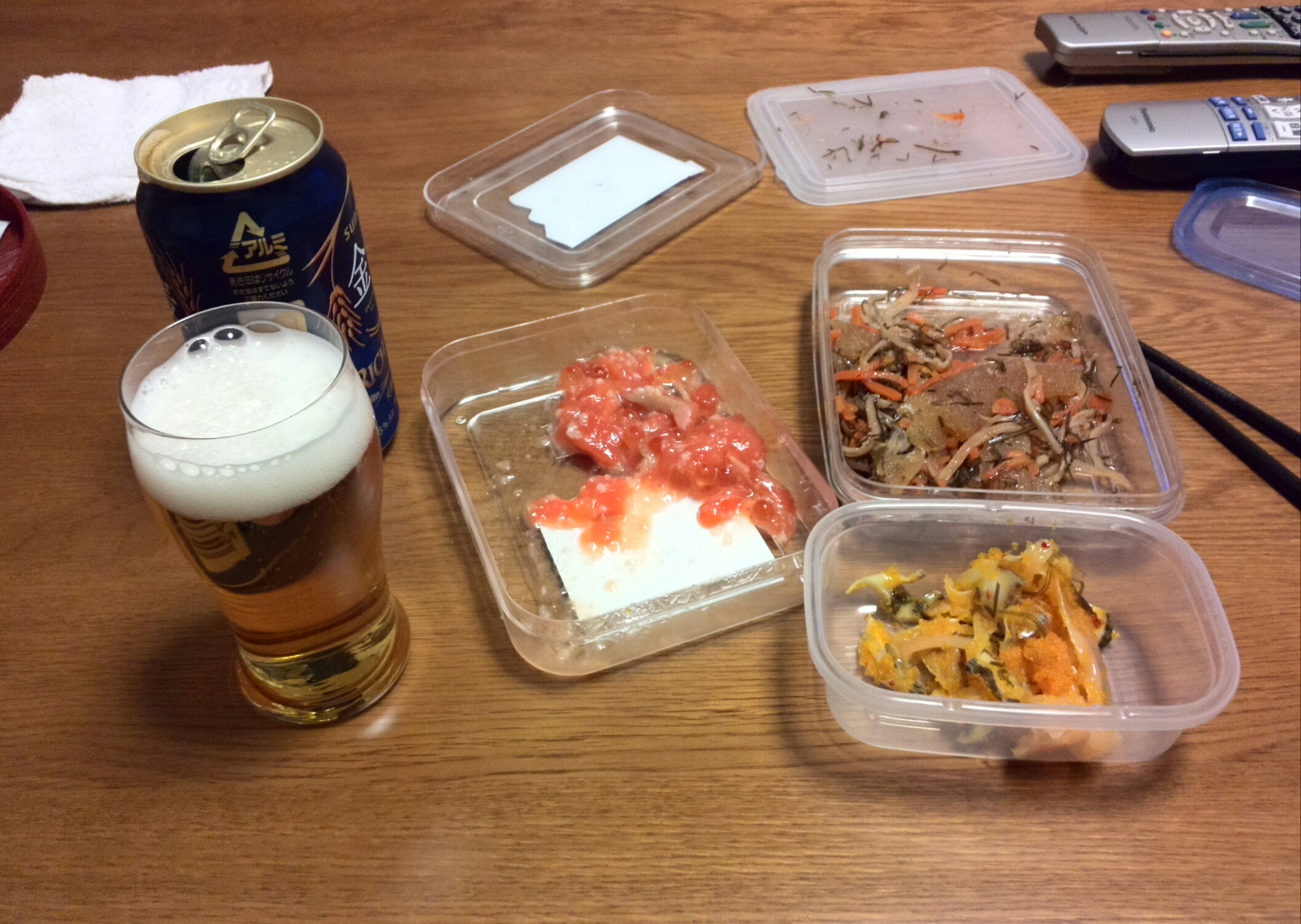 結局12時過ぎまでお喋りして帰り、シャワー後金麦タイム~