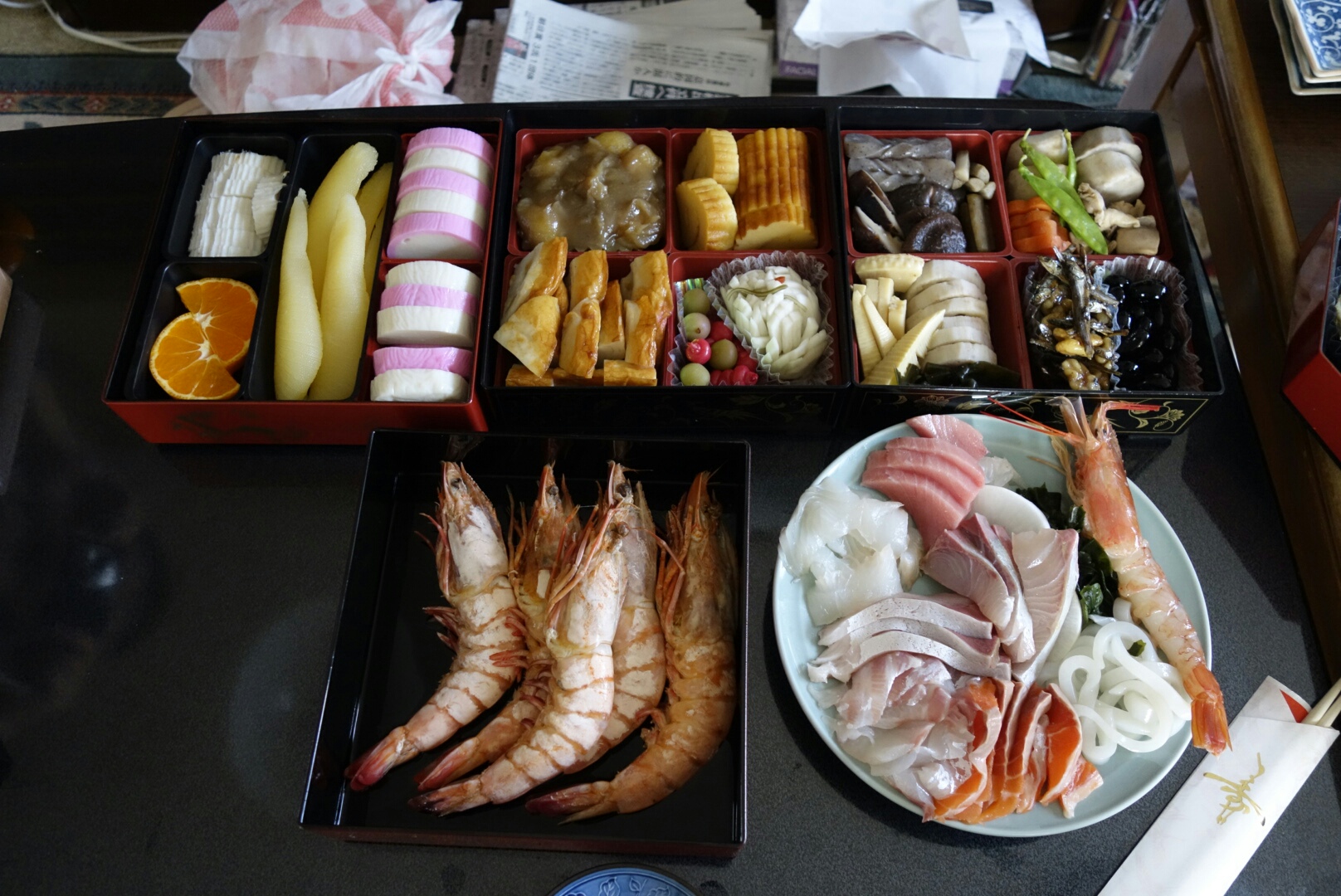 帰って少しだけ寝て、実家でアホみたいに大量の刺身と中華お節+αでまた飲み(笑)、自宅に戻って夕方寝た後刺身の残り等で更に飲み・・・