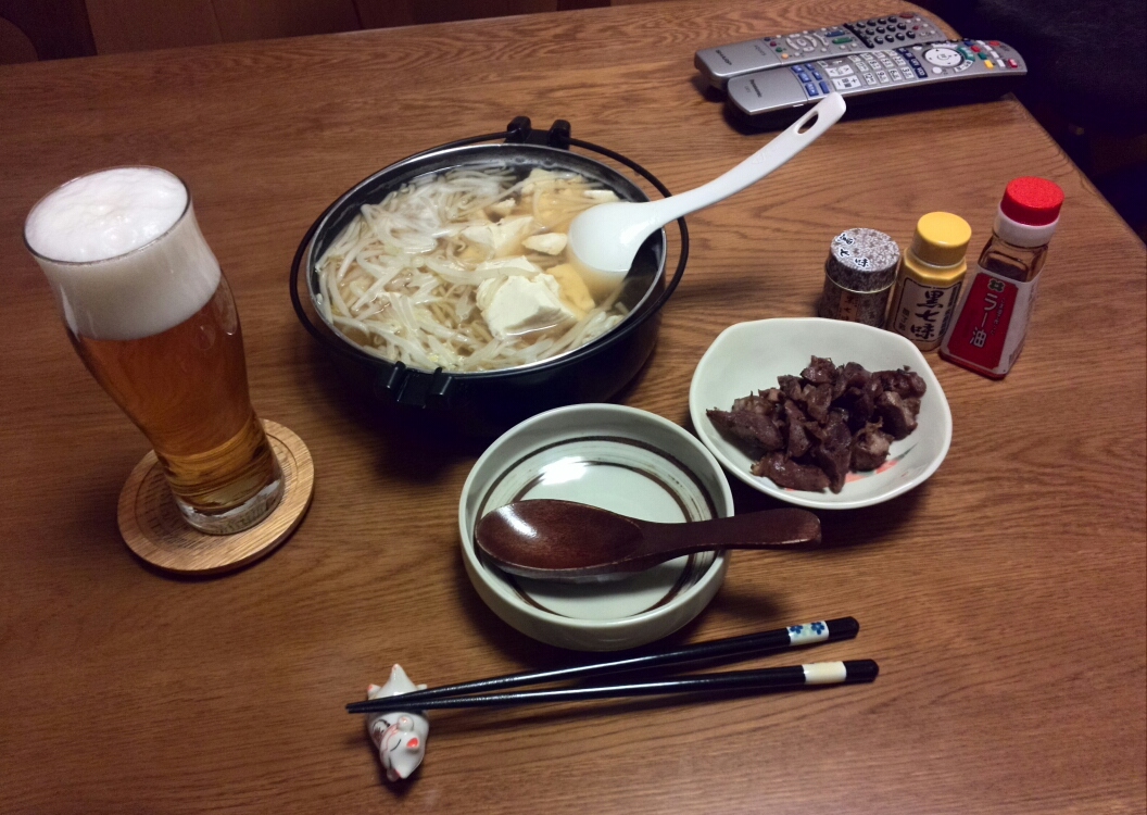 という事で、昆布で出汁を取って日本酒、みりん、昆布が入っていない白だしと味ぽん、醤油で味を調えて砂肝ともやし、豆腐を煮てみました。