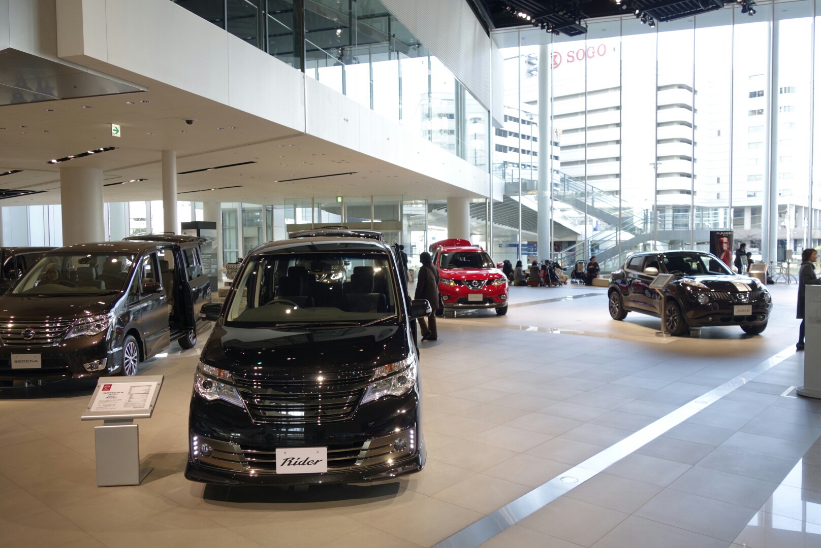 マークイズでお昼に玉子とじ蕎麦とお総菜バイキングを食べ、日産の展示を見学しつつ歩いてそごうまで。