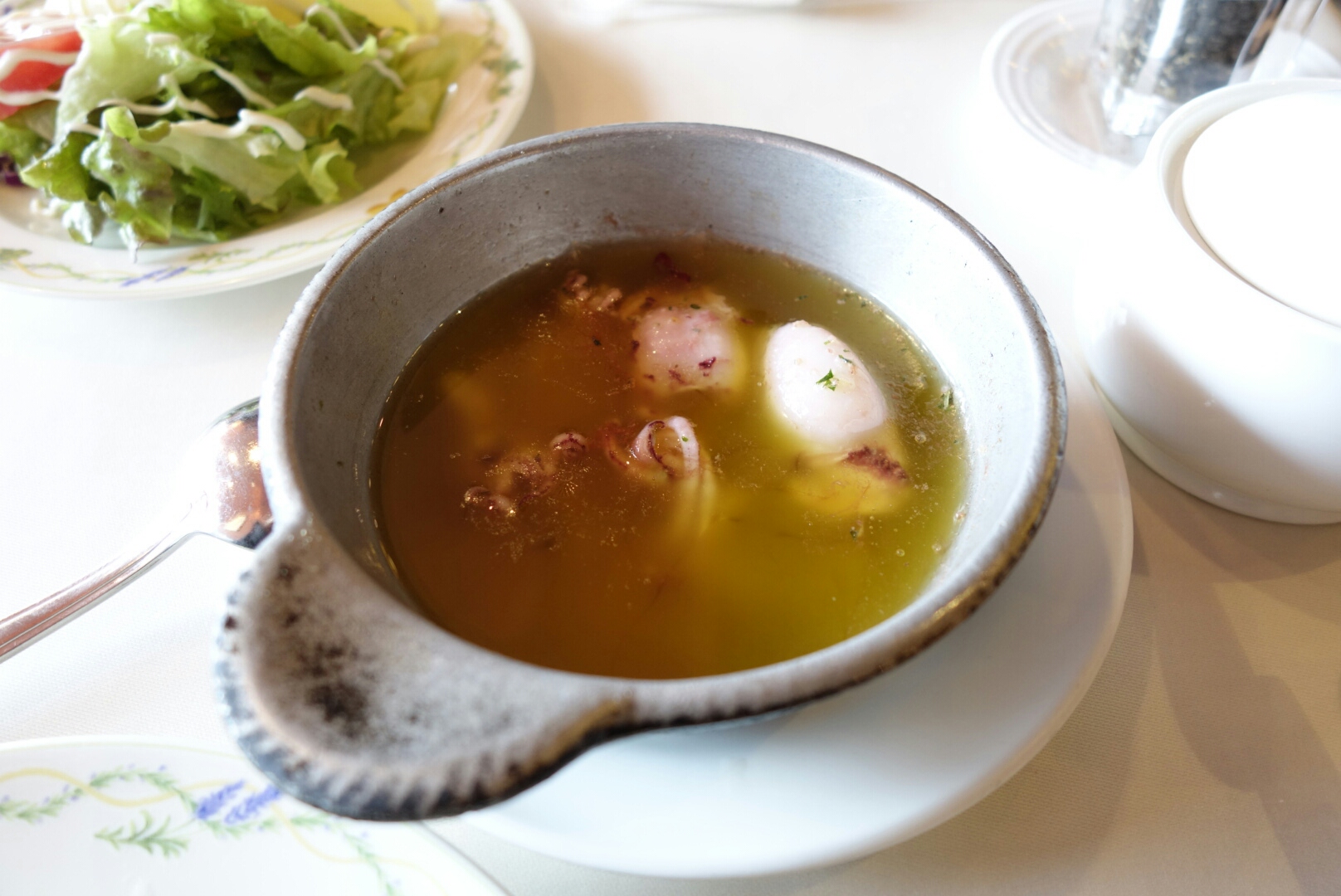 前菜は小ヤリイカをオリーブオイルで煮たもの。