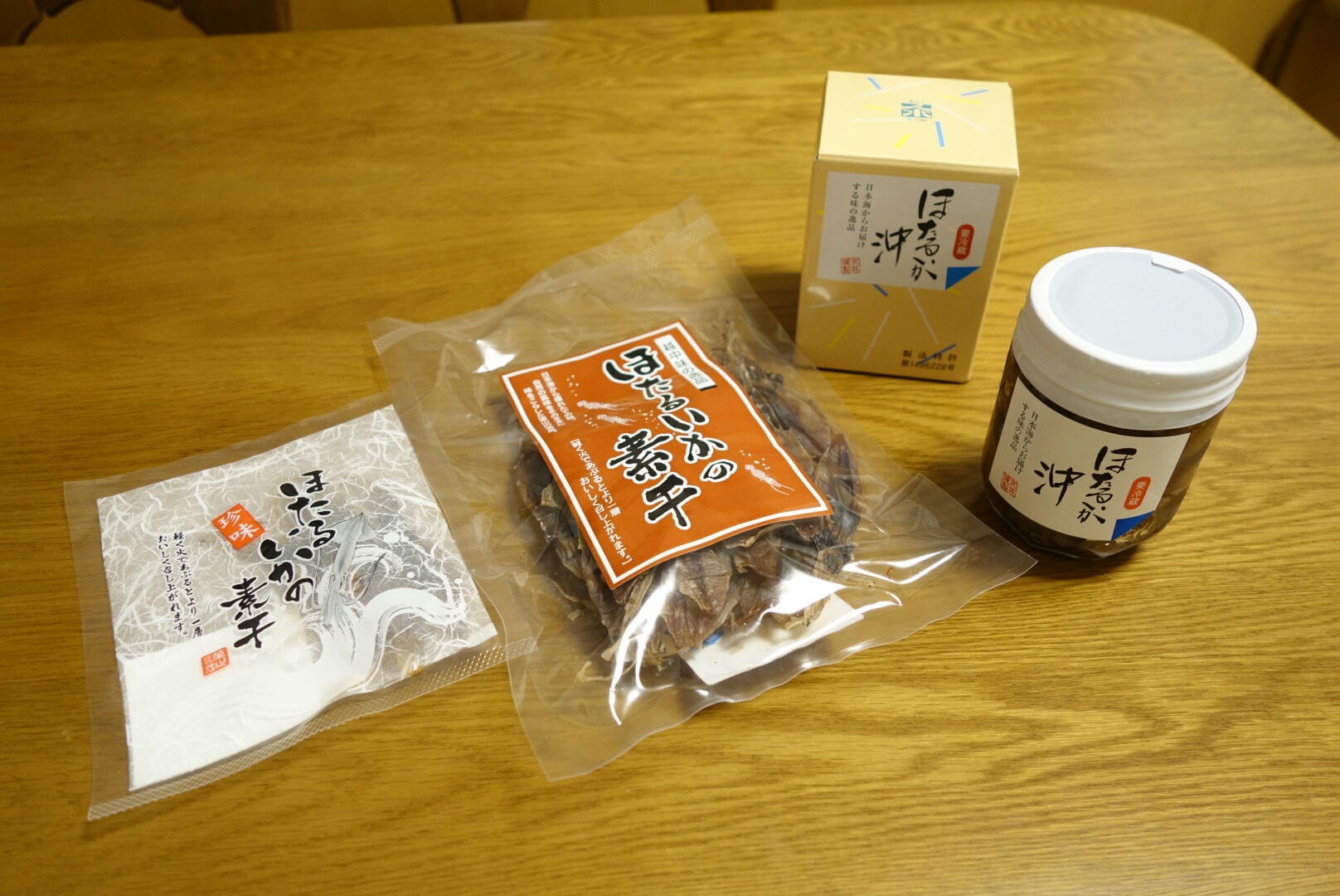 高島屋の全国美味いもの物産展的なやつで買った「小城羊羹」「ほたるいかの沖漬」「ほたるいかの素干」