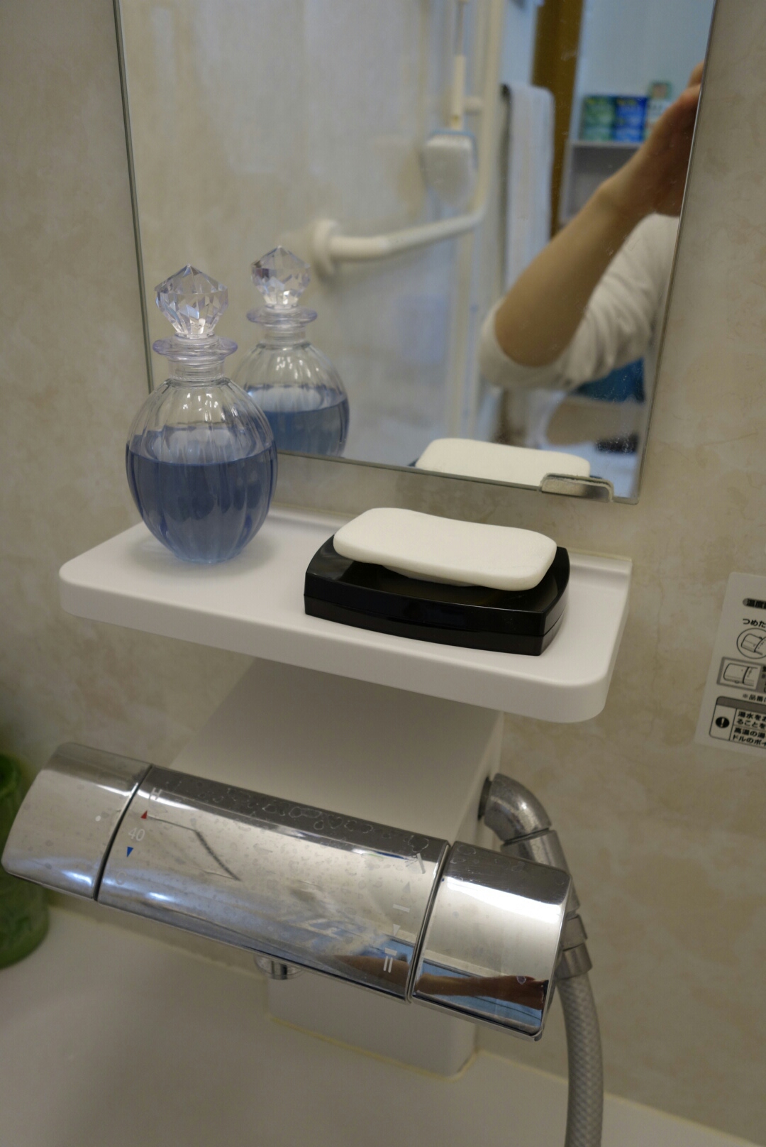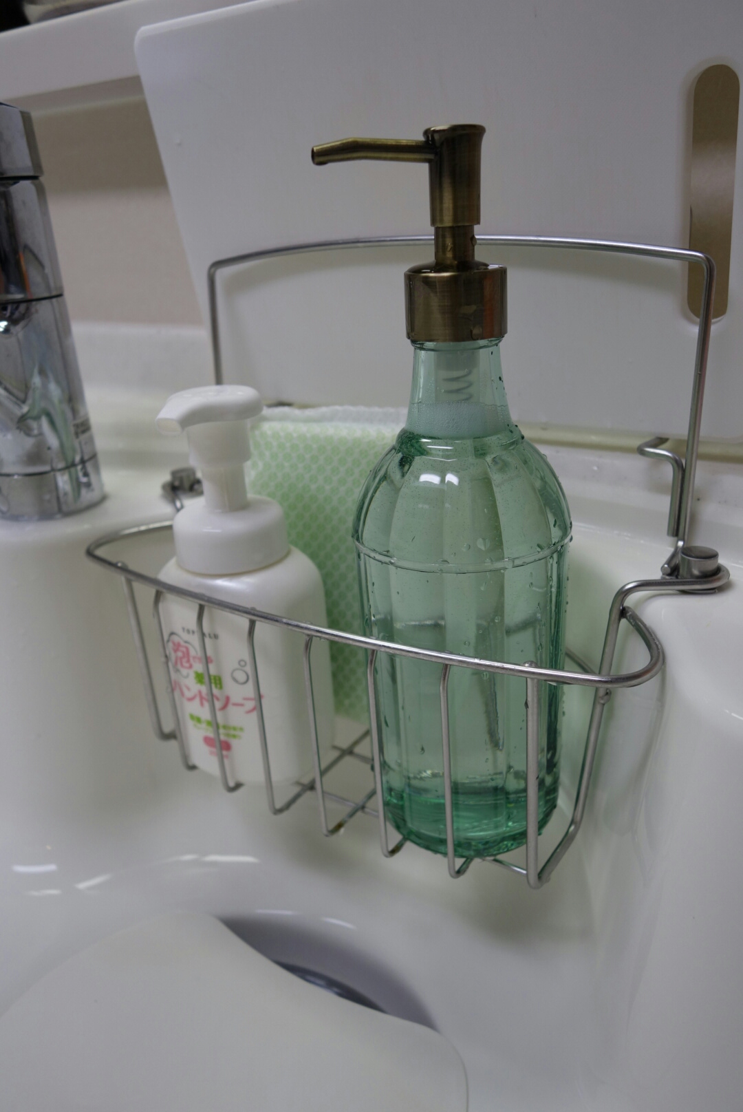 ロフトで買ったのは歯ブラシ置きとソープディッシュ、そしてシャンプーボトルなのですが、ボトルはキッチンで台所用洗剤用のボトルとして。