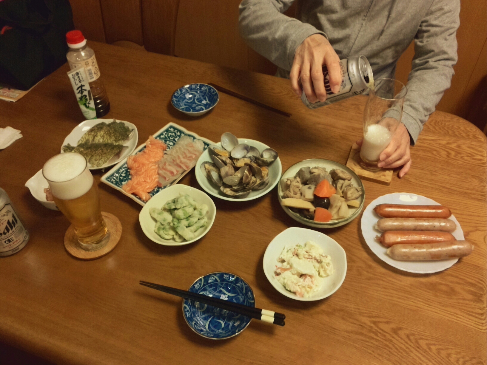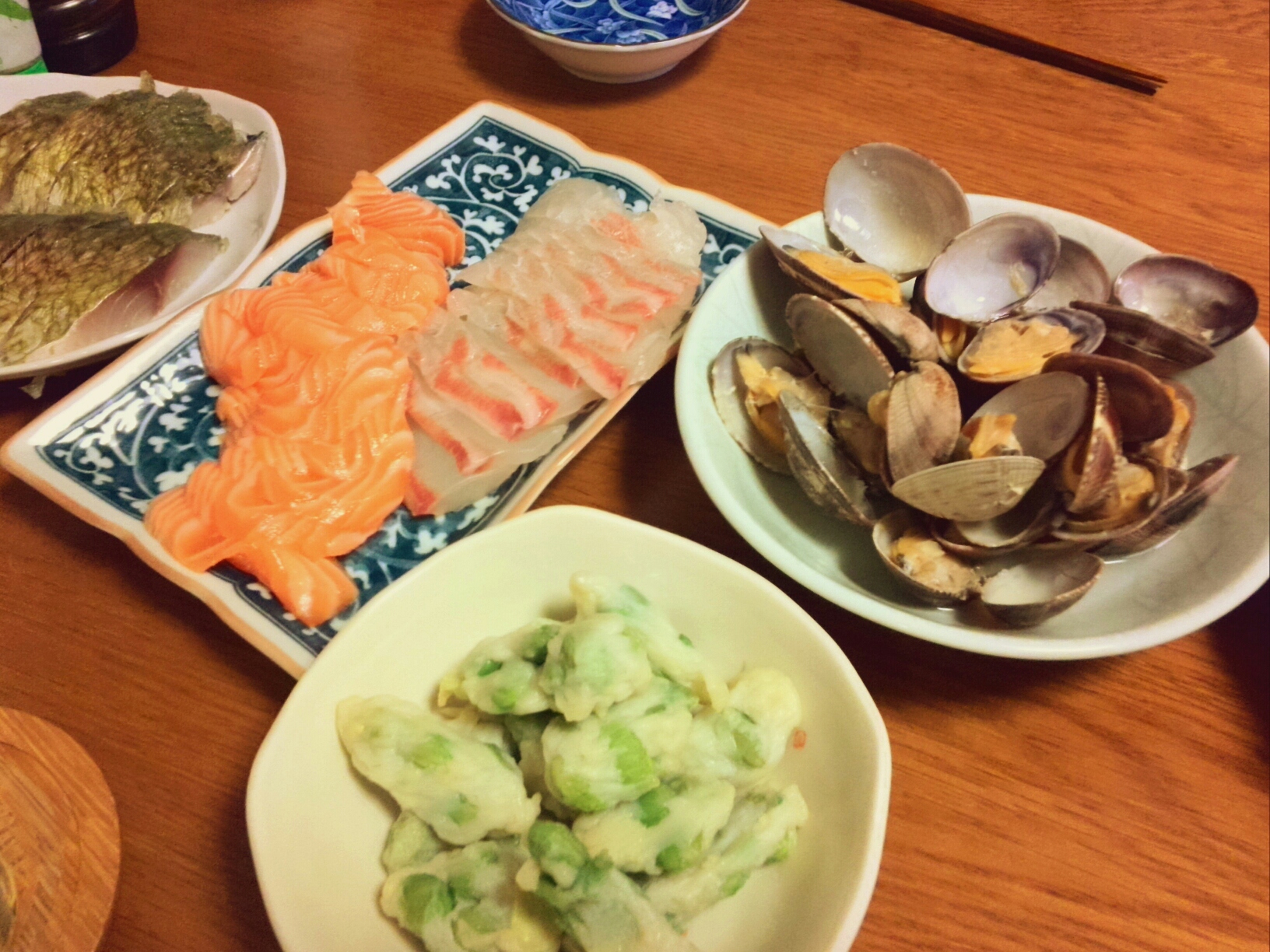 九州から送って貰ったしめ鯖とダイエーで買ってきた真鯛、サーモン、初めて作ってみた筑前煮他。