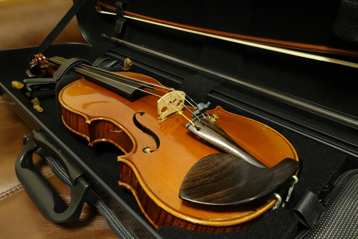 今の4/4ヴァイオリンになってから使っていた布張りのケースがえらい事になっていたので、ずっと良い物はないかと探していました。