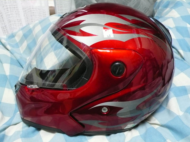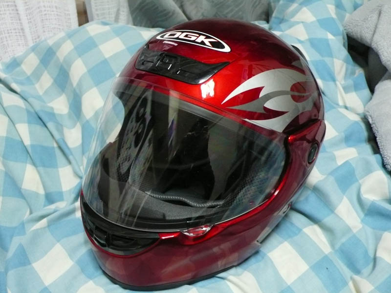 メットはマットブラックを買おうと思っていたが、シャイニーレッドというのを見つけてしまい、それにする事に。