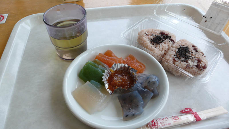 と言ってもおこわおにぎりと刺身こんにゃくという質素な食事。