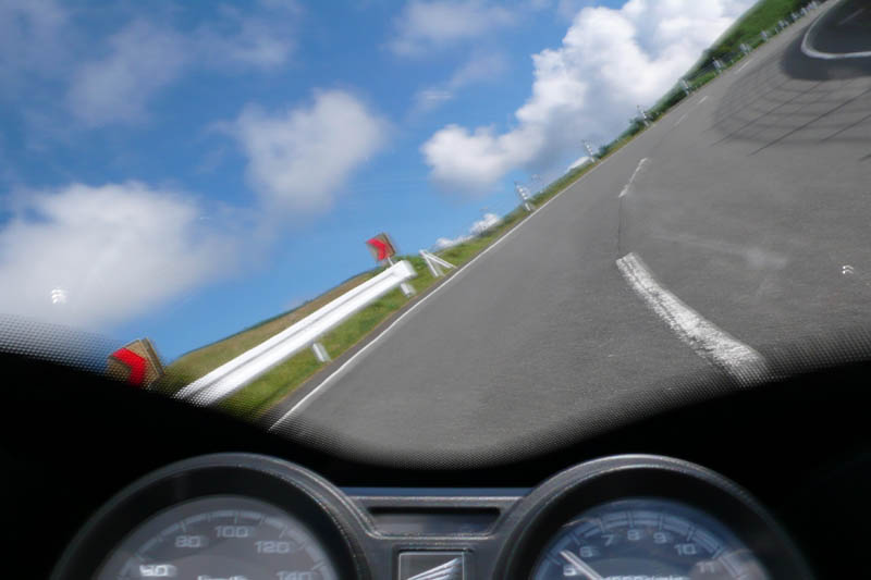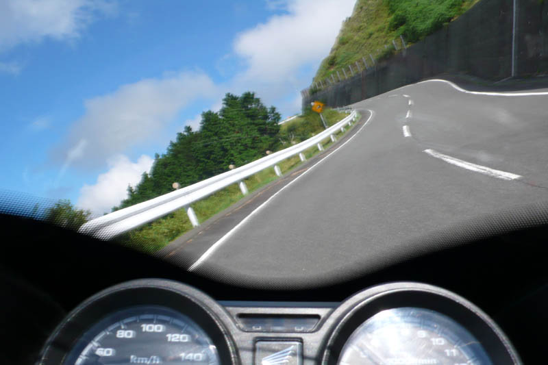 良く舗装された道と高原の緑、空の青と白い雲を楽しみながらバンクを楽しんだ。