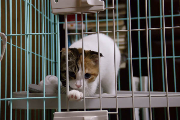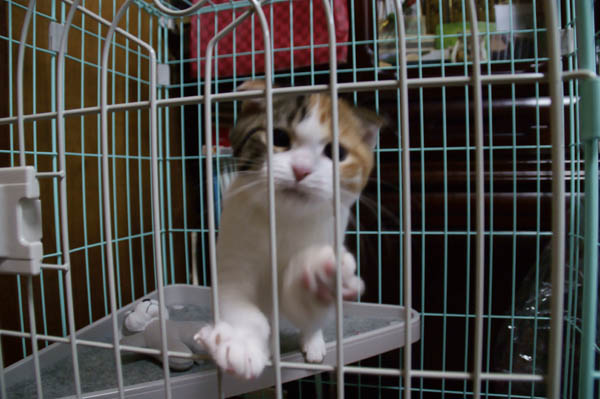 スコティッシュ・フォールドは関節が柔らかい種類という事で、捕まえて抱き上げてもすり抜けてしまう。