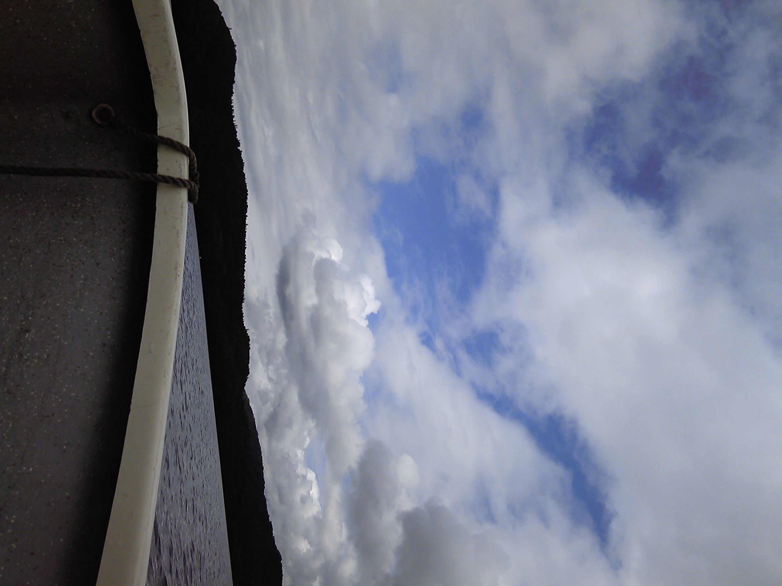 写真は親父と兄貴、ボートと空、綺麗な水