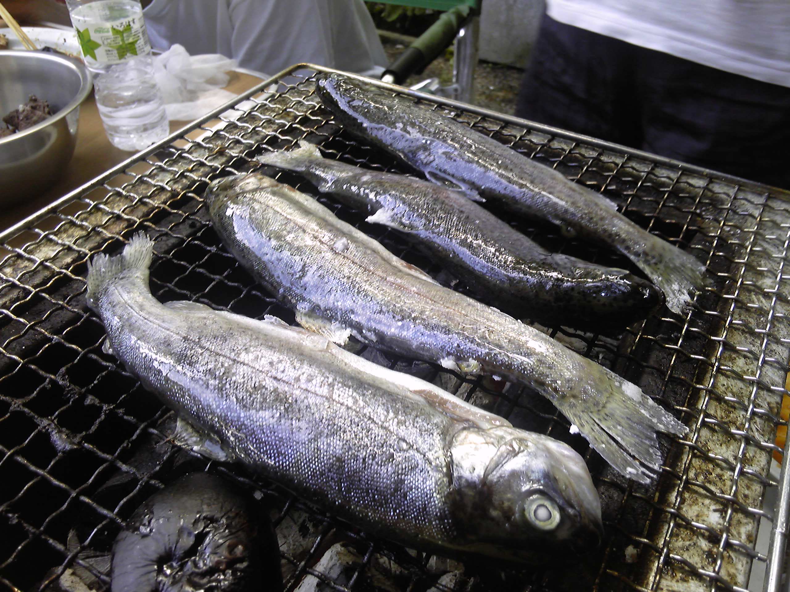 昨日「能生」という新潟の道の駅で買ったタコ(昨晩刺身で食べた残り)とサザエと白馬のジャスコで買ったニジマスと・・・