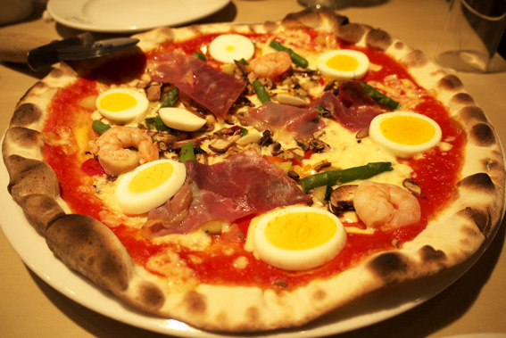 シェフの気まぐれピッツァとホワイトチョコとベリーのタルトを食す