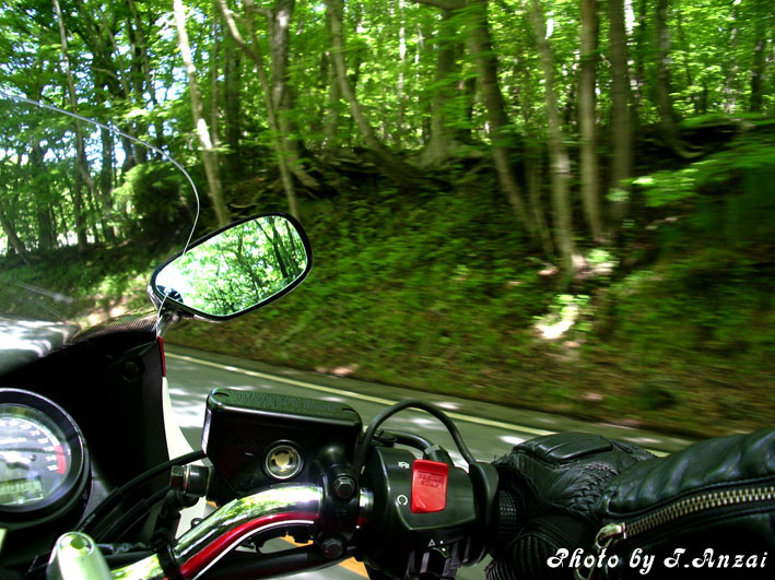 暑すぎず寒すぎず、気持ちのいい風を受けながら清々しい森林の中をひた走る
