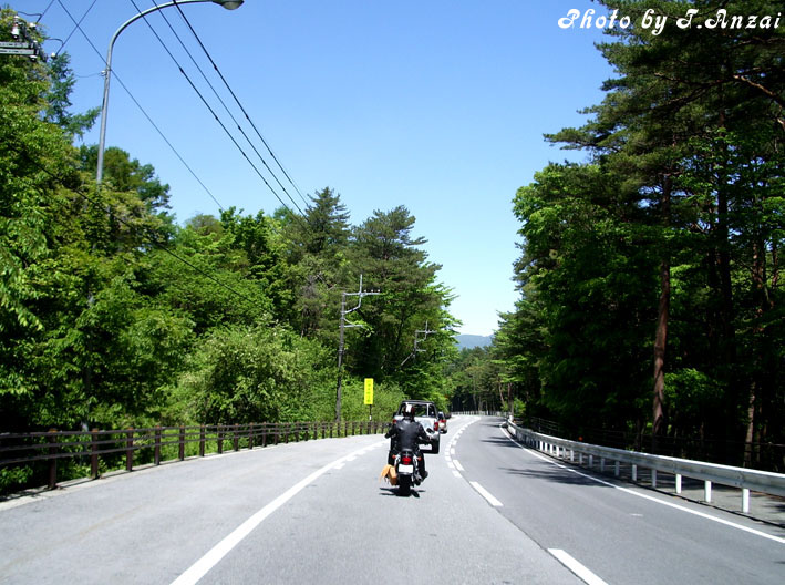 道幅は広く、路面も綺麗 左右を森に囲まれ心なしか空気も良く感じる