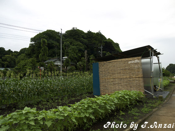 手前にはとうもろこし畑と直売所