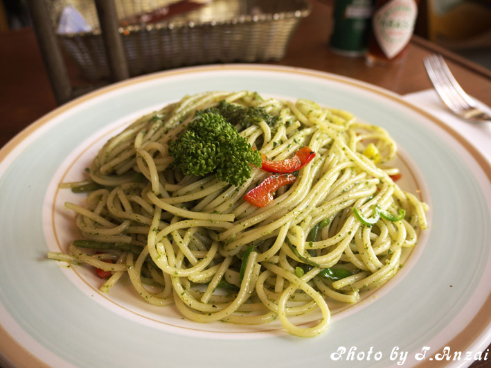 バジリコソースのパスタは香り高くとても美味しい