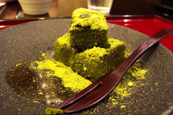 昼ごはんは「茶カフェ 上辻園」で京湯葉入りの親子丼と抹茶わらびもちを食べた