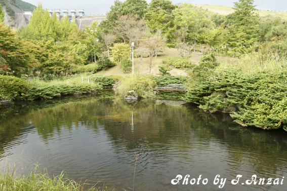 小さな池があり中には鯉達が泳いでいるのだが、その池の形が丹沢湖の形をしていて所々に橋もある