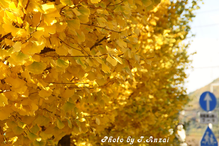 かなりの量の銀杏が散っていて、木を見上げると少し寂しい感じだが、その分足元は黄金色に輝く絨毯のよう