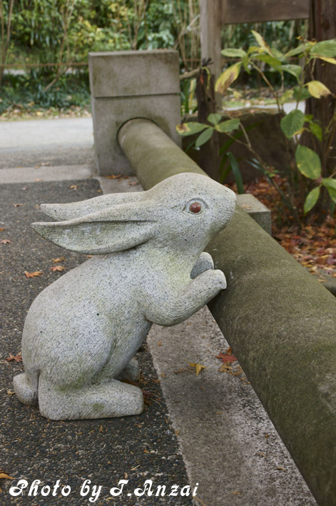 小さな橋を渡って入るのだが、その橋には兎の石像が