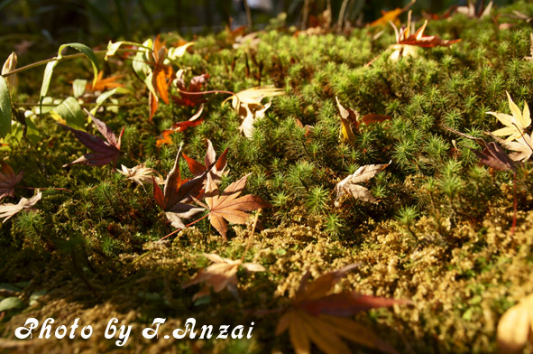 苔むした所に落ちている葉が哀愁誘う