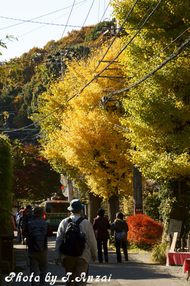 明月院を出て来た道を引き返していると、さっき反対側から見た紅葉がより印象的に見えた