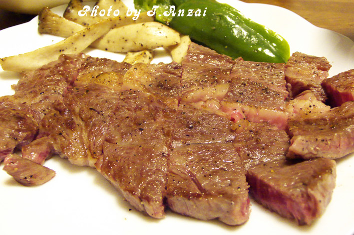 ステーキは兎に角レアが好きなので、レアとベリーレアの中間位の焼き加減にしておく