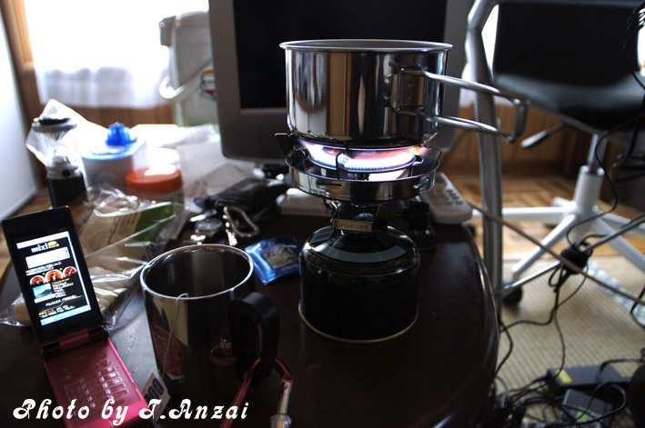 キャンプ用のバーナーとコッヘルでお湯を沸かして紅茶を飲む